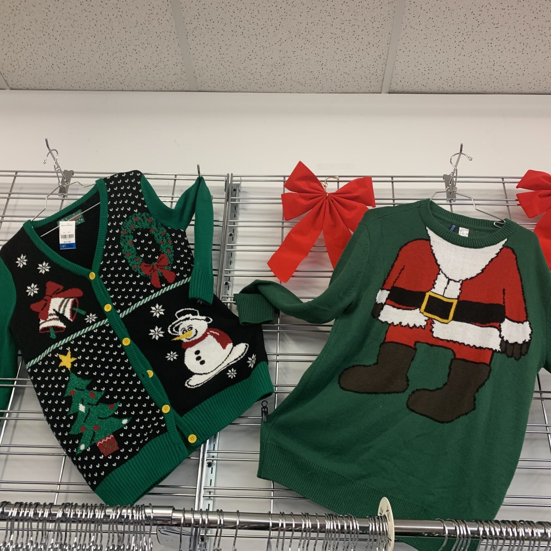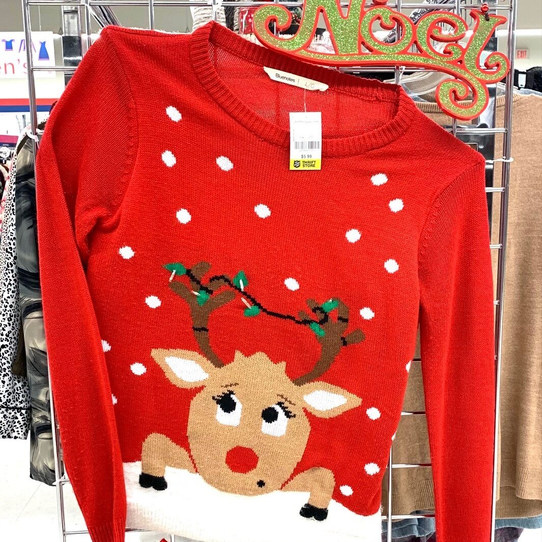 Vous demandez-vous où vous pourriez trouver un chandail de Noël pour votre « party » de bureau? Et bien, ne cherchez plus, car dans nos magasins d’occasions nous avons un vaste assortiment de chandails de Noël allant de modèles classiques à des modèles rigolos.